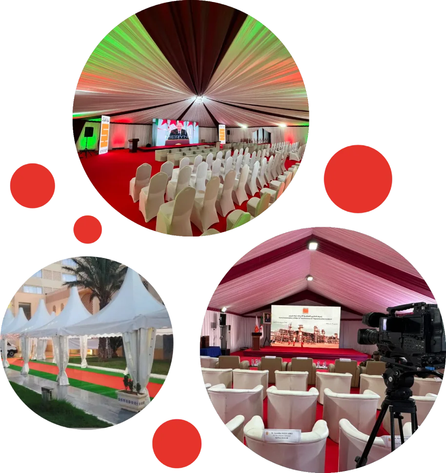 Spécialisée dans la location de chapiteaux de très haute qualité et dans l’aménagement complet d’espaces événementiels, notre entreprise intervient lors de manifestations de haut niveau, y compris des visites présidentielles.